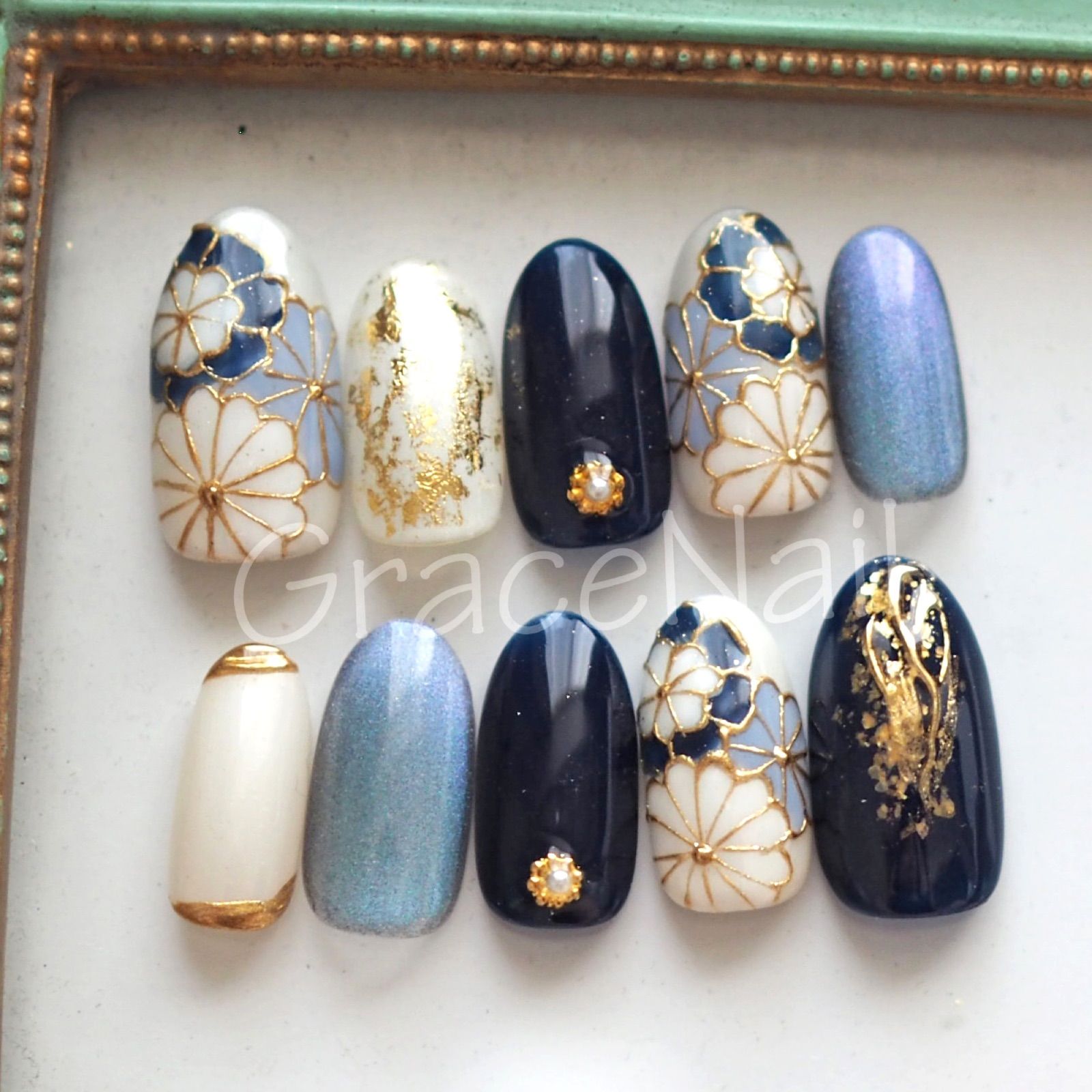 - ネイルケア > ネイルチップ・付け爪 > ネイルチップ 成人式 和柄 青 花 フラワー フルオーダーネイル オーダーネイル ネイルチップ 成人式 和柄 青 花 フラワー フルオーダーネイル