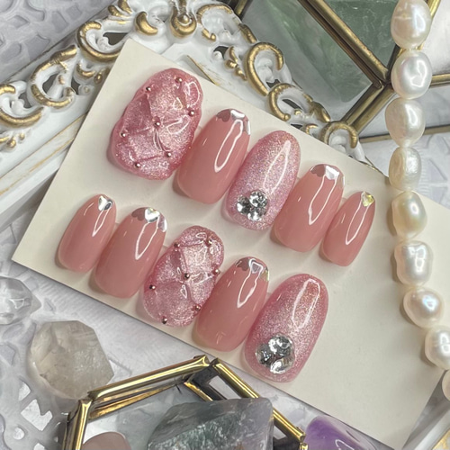 - ネイルケア > ネイルチップ・付け爪 > ネイルチップ オーダー キルティング マグネット エンジェル ミラーリボン 韓国 ネイルチップ オーダー キルティング マグネット エンジェル ミラー