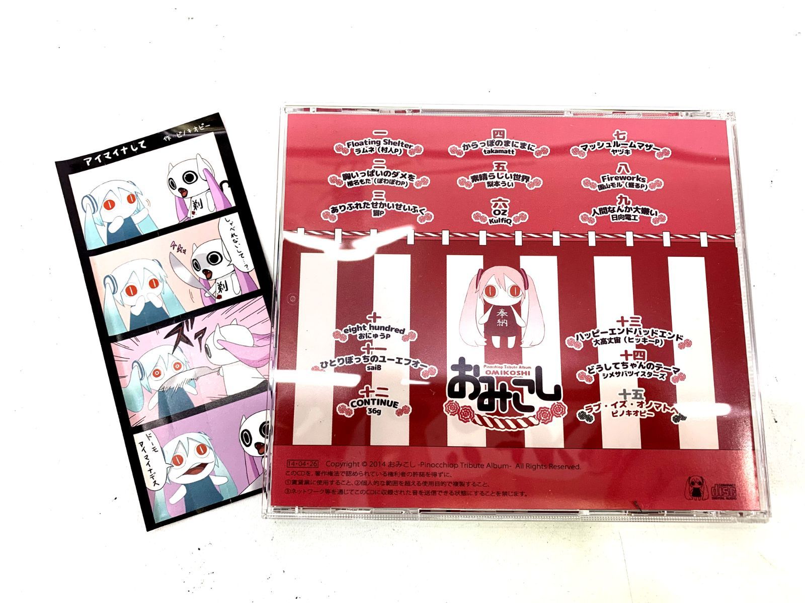 | 商品の特徴 | 希少 ピノキオピー おみこし Tribute ボカロ CD 初音ミク Amazon.co.jp。希少 ピノキオピー おみこし Tribute ボカロ CD 初音ミク Amazon.co.jp。希少 ピノキオピー おみこし Tribute ボカロ CD 初音ミク Amazon.co.jp。帯は付属しません。希少 ピノキオピー おみこし ボカロ CD 初音ミク Tribute。おみこし-PinocchioP Tribute Album-ボカロ ボーカロイド VOCALOID UTAU初音ミク 鏡音リン GUMI 結月ゆかりmiki 重音テト ピノキオピー ラムネ村人P 椎名もた ぽわぽわP 鬱P takamatt 梨本うい KulfiQ ヤヅキ激オコP 園山モル 盛るP 日向電工おにゅうP saiB 36g 大高丈宙ヒッキーP シメサバツイスターズ同人音楽 CD | ||