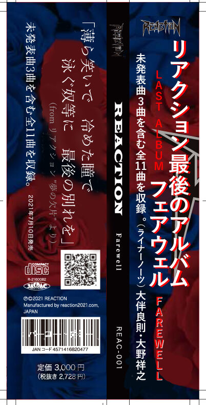 - CD > 邦楽 > 邦楽 REACTION/REACTION FINAL DVD+CD/ Farewell 邦楽 REACTION/REACTION FINAL DVD+CD/ Farewell 邦楽 REACTION