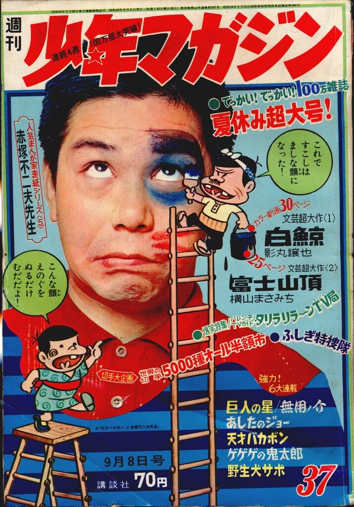 | 商品の特徴 | 1969年 少年マガジン 週刊 43 講談社。【美品 昭和レトロ】 1969年少年。1969年 少年マガジン 週刊 43 講談社。【美品 昭和レトロ】。backend=imagemagick;version=1;。1969年刊の少年マガジンです。特集は、スカイダイビング、ユーモアな絵、当時の人気漫画が、巨人の星、明日のジョー、ジョージ秋山や、政岡としやの漫画がありました。古い本の割には綺麗です。ご購入よろしくお願いします。#461。昭和49年 週刊少年マガジン No.18・19 | レトロ・スタイル。コナン 1-95巻 86巻抜け。ブラック・ジャック 全巻セット 1〜25巻 手塚治虫 初版 チラシ付き。ワールドトリガー 1-21巻 | ||