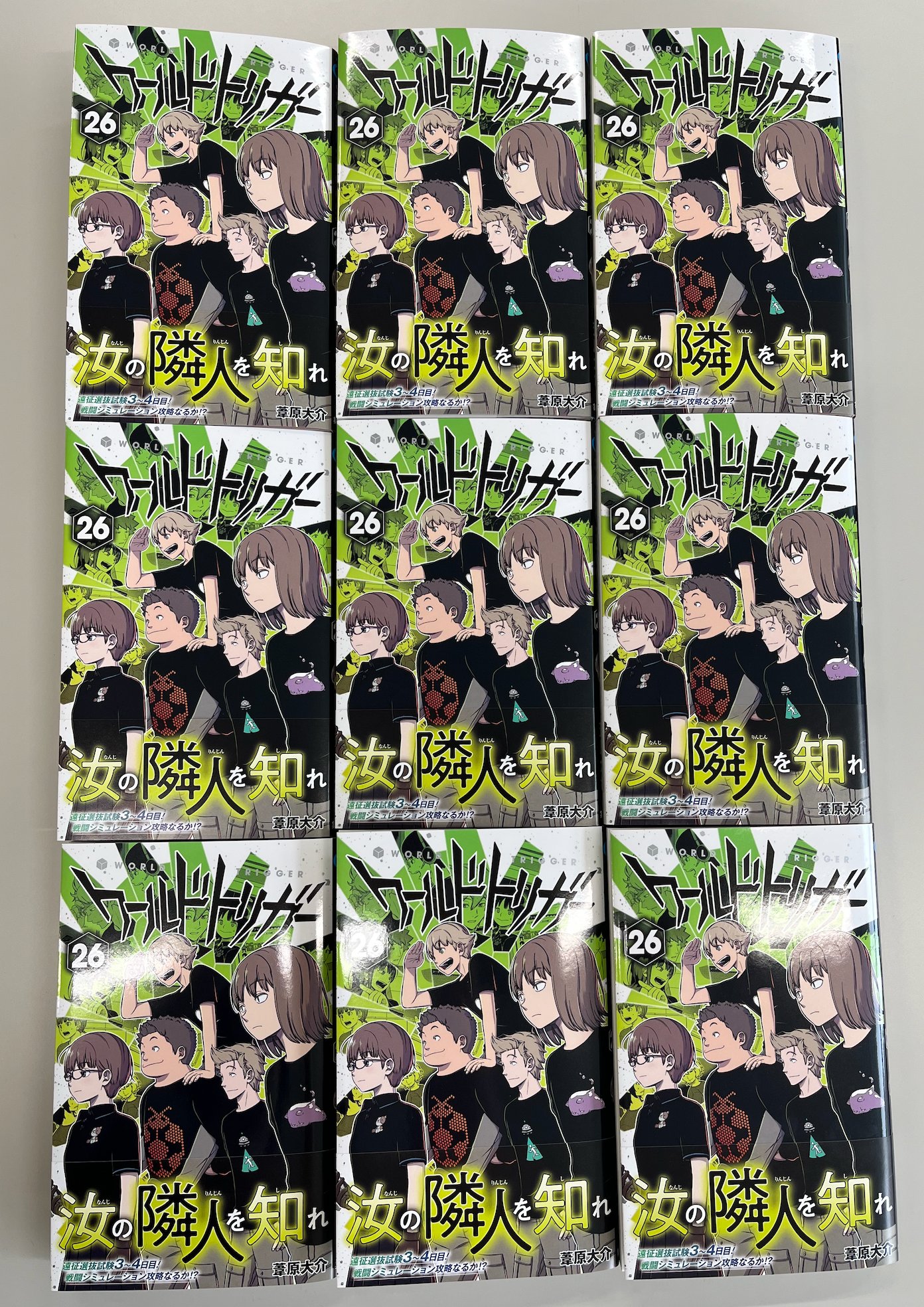 | 商品の特徴 | ワールドトリガー 1〜26巻セット WORLD TRIGGER 26巻セット ワールド。ワールドトリガー 1〜26巻セット WORLD TRIGGER 26巻セット ワールド。ワールドトリガー 26巻セット WORLD TRIGGER 26巻セット ワールド。- タイトル:WORLD TRIGGER-漫画:葦原大介- 巻数: 1-26経年劣化によるヤケはございますが、目立った汚れや折れなどもなく、まだまだ十分にお楽しみいただける状態です!自宅保管の中古品であることをご理解のうえ、ご購入をお願いいたします。ワールドトリガー = WORLD TRIGGER 1〜18巻 ワールドトリガー 全26巻。非喫煙者 | ||