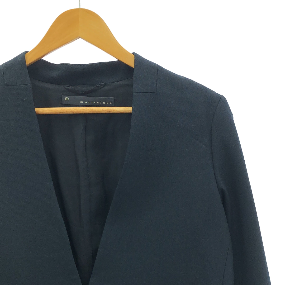 【美品】martinique ノーカラージャケット ネイビー パールボタン martinique / マルティニーク | ノーカラー Vカラーネック ジャケット