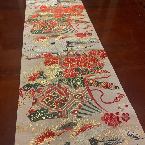 - キッチン・食器 > テーブル用品 > 3005花嫁衣装の丸帯リメイク タッセル付き正絹テーブルランナーと2964 3005花嫁衣装の丸帯リメイク タッセル付き正絹テーブルランナーと2964