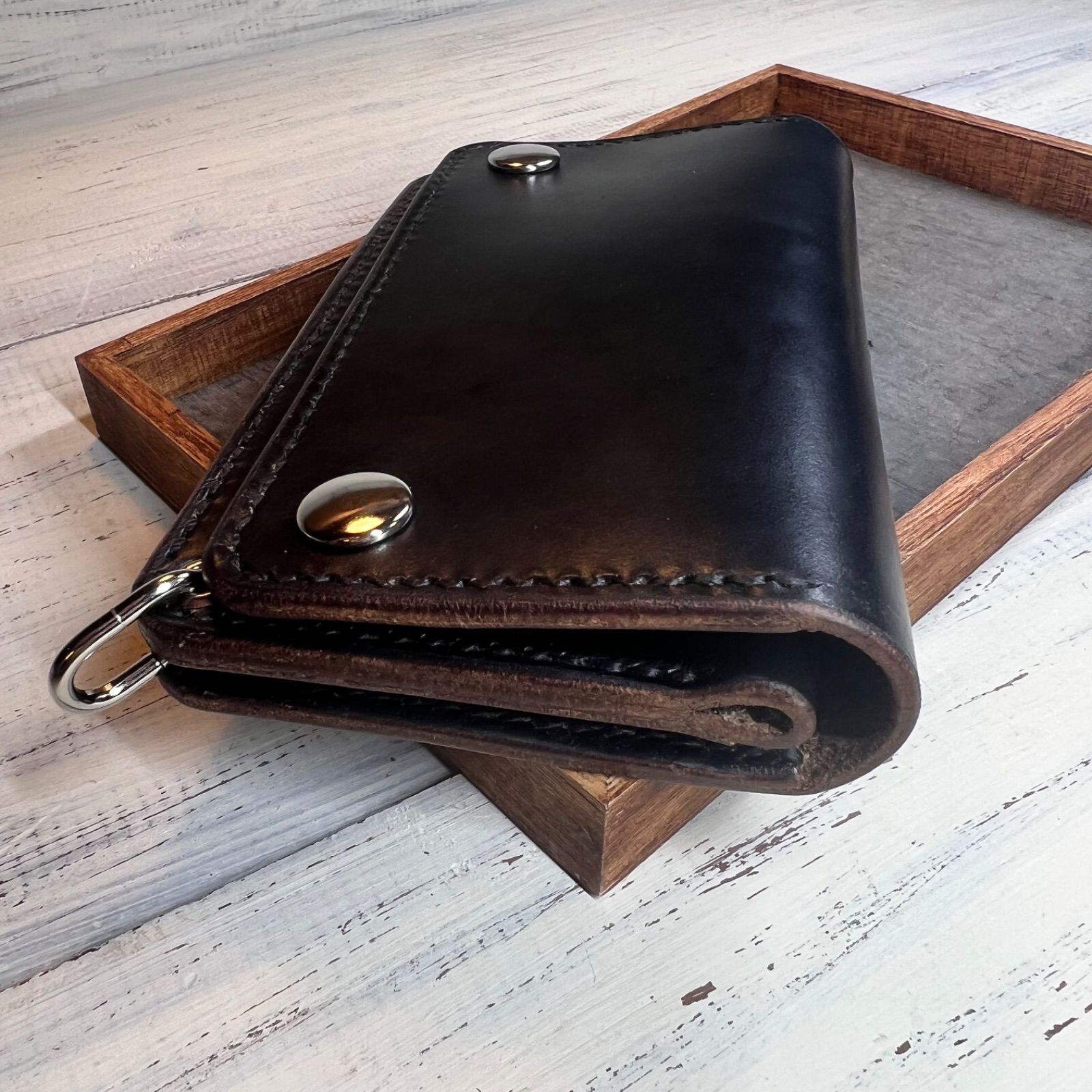 | 商品の特徴 | トラッカーウォレット ミドル 2層】 クロムエクセル 茶芯 ブラック。トラッカーウォレットミドル 2層】クロムエクセル ブラック 茶芯。トラッカーウォレットミドル 2層】クロムエクセル ブラック 茶芯。【トラッカーウォレット ミドル2層 】・ハンドメイドにて丁寧に製作しています。TOM FORD トムフォード 長財布 ラウンドジップ 極上 ブラック 箱付き。■カラーブラック■サイズ、仕様縦…約9.5㎝ 横…約15㎝厚さ…約2.5㎝小銭入れ×1、札入れ×2、カード入れ×1、ポケット×1■素材牛革 (HORWEEN クロムエクセル )1905年創業のアメリカHORWEEN(ホーウィン)社によるヘビーオイルドレザーです。未使用品 ポールスミス ポールドローイング ラウンドジップ 長財布 ブラック。■革について・使い方や時間経過によって風合いが変わっていきます。ルイ ヴィトン モノグラム マカサー ラウンドファスナー 長財布 M60109。・サイズは形状により表示寸法と多少異なる場合がございます。SLOWスロウ 黒レザー 長財布 美品 高級。。ミドル トラッカーウォレット < クロムエクセルレザー 茶芯ブラック。・金具は全てシルバー色で揃えております。・ファスナーはYKK製を使用しております。【未使用】トムフォード 長財布 フラップウォレット ゴールドロゴ ブラック 黒。mamakin ママキン バイカーウォレット 長財布。一般的なオイルドレザーよりさらに多量のオイルを浸透させることで得られるくったりした柔らかさと重量感が特徴。革を揉むと内部油分の移動によって色味が変化(黒は変化が目視できません)するプルアップが見られるほか、蜜蝋も含まれているためブライドルレザーのように経年変化でロウ成分が浮き出てきます。ルブタン ブラックレザー長財布。MARYAM ホースバット セミロングトラッカーウォレット2層 42タロン 茶芯。・天然素材になりますのでシミ、しわ、傷跡、色ムラなどがあることがございます。・ひとつひとつ手作業で丁寧に製作しておりますが、製作時のスレや汚れがついてしまう場所がございます。redmoon レッドムーン レザー長財布。【財布】ルイ ヴィトン ラウンドファスナー 2つ折 長財布 イニシャル入り。・写真と実物では色合いと質感が異なることがあります。・財布のみの販売になります。HERMES シチズンツイル ブラック 新品未使用 | ||