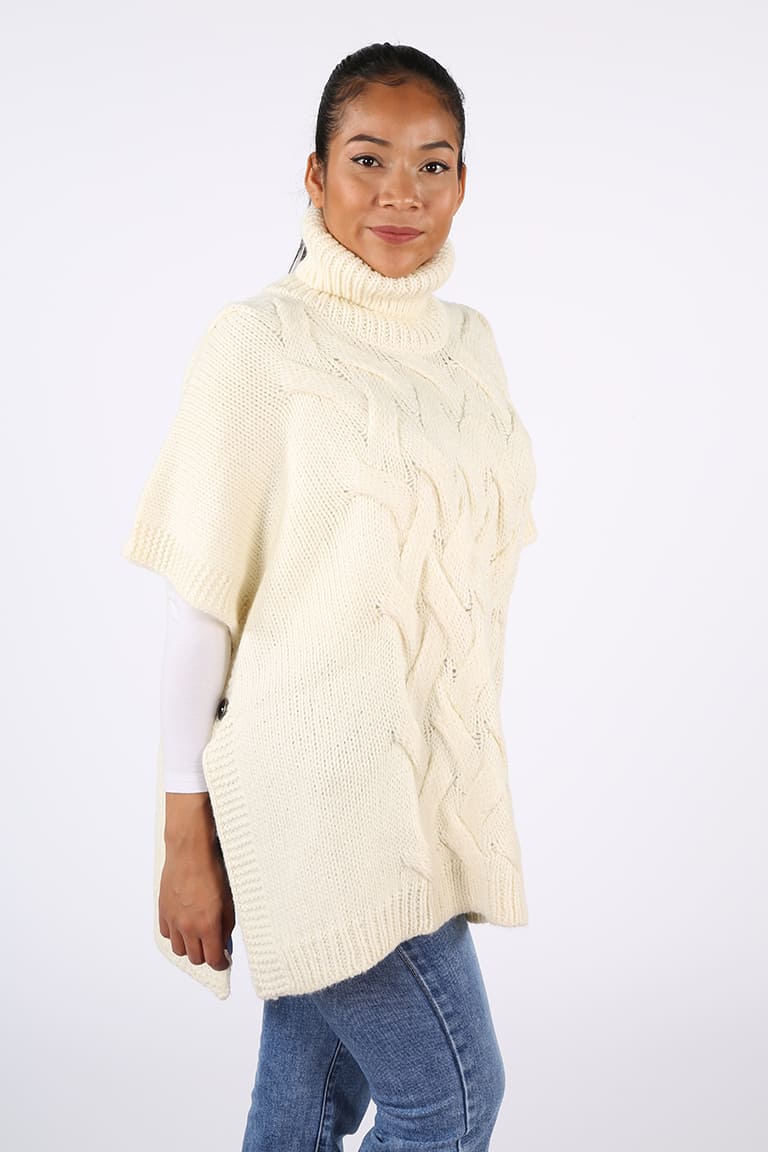 極美品 YOSOOU Two Piece Collar Poncho Wool Poncho with Cable Knit and Donut Collar - Poncho Cable Knit