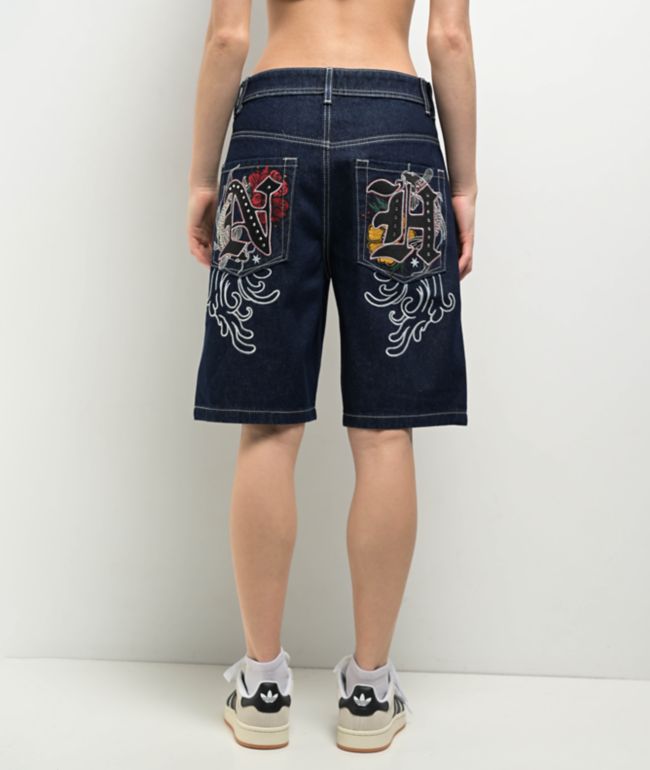 美品 doublet CHAOS EMBROIDERY COMFY SHORTS Ninth Hall Jennifer Cross & Wings Black Foldover Shorts | Zumiez