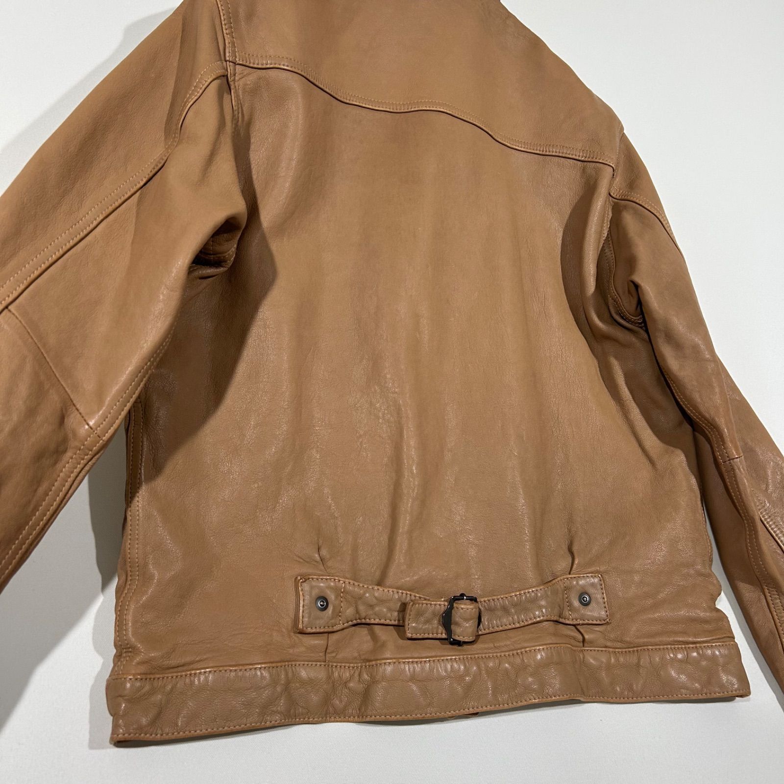 | 商品の特徴 | SKOOKUM スクーカム JACKROSE ジャックローズ 1st レザージャケット。SKOOKUM スクーカム JACKROSE ジャックローズ 1st レザージャケット。中古・古着通販】skookum (スクーカム) JACKROSE (ジャックローズ。SKOOKUM×JACKROSE 1stタイプ ヴィンテージレザー トラッカージャケット柔らかいベジタブルタンニンの羊革を使用したトレンドである短丈、トラッカーレザージャケットです。最終行程でウォッシュド加工を施し、ヴィンテージ感ある加工が味わい深く渋い一品。主観ですが手に触れたときの質感、クオリティは数十万円するような老舗レザーメーカー、ハイブランドに匹敵するぐらい上質な仕上りです。デザインは1stタイプのサンプリングなので、何にでも着合せ易く、デニムと同様に末長く経年変化を楽しめます。カラー ブラック価格47,300円(税込)サイズ: 3 サイズ:M 状態 着用は10回未満ですが、元々ヴィンテージ化工されてる表面は天然皮革なので若干の特有の匂い、細かなシワ、キズ使用感はございますが、写真のとおりまだまだ美品です。革はお手入れ済み検品済みですが小さいキズやシミ・ほつれ・小穴など見落とす可能性があります。中古ですので神経質な方のご購入はお控えください。ご理解いただいた上でご購入してください。※ご購入前に必ずプロフをご確認下さい。※ご購入者都合による返品は対応しません。※神経質な方のご購入はお控えください。#レザートラッカージャケット#シングルライダース#シングルレザージャケット#レザージャケット#レザーブルゾン#ルイスレザー#リーバイス1st#リーバイスレザージャケット#リーバイス#ジージャン#ショット#ルイスレザー#ギャップレザー#GAP#666#ジェームスグロース#アヴィレックス#チンクワンタ#バルマン#ディーゼル#エンメティ#ゴールデングース#アンダーカバー#アンダーカバーレザー#ネイバーフッド#レザージャケット#レザーブルゾン#レザーコート#バンソン#ジョンブル#ミリタリーレザーブルゾン#ユナイテッドアローズ#ビームス#ジャーナルスタンダード#アーバンリサーチ#トゥモローランド#ビショップ#フリークスストア#ナノユニバース#JACKROSE#エディーバウアー#ヴィンテージレザー#ヴィンテージレザージャケット#ヴィンテージ#APC#スクーカム#井口理#菅田将暉#優里#ベルベルジン。SKOOKUM スクーカム JACKROSE ジャックローズ 1st レザージャケット。【美品】BEAMS ビームス レザー ジップブルゾン。✨美品・641XX✨ショット シングル ライダースジャケット ブラック 7009。シップス レザージャケット ブルゾン ジップアップ ヤギ革 スエード SHIPS。6*6様 Schott ショット vintage 黒 ブラック レザーベスト L。希少 UNDERCOVER 07AW 逆ハの字レザーライダース。リチウムオム シープスキン ボンバージャケット 46サイズ。BELSTAFFベルスタッフ ジャケット フード付き RN 137608。極美品 バンソン モーターサイクルジャケット ワッペン アメリカ国旗 星。大幅値下げです!Schott Perfecto ブラックレザー ジャケット 36。カドヤ★超希少 リアルレザー 牛革 エルボーパッチ ライダースジャケット 黒 L | ||
