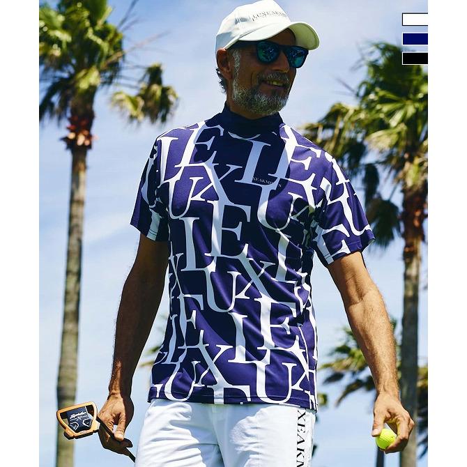 - ゴルフ > メンズウェア > LUXEAKMPLUS リュクスエイケイエムプラス ビッグロゴ ゴルフウェア LUXE AKM PLUS リュクスエイケイエムプラス ゴルフ 総柄ロゴ 半袖