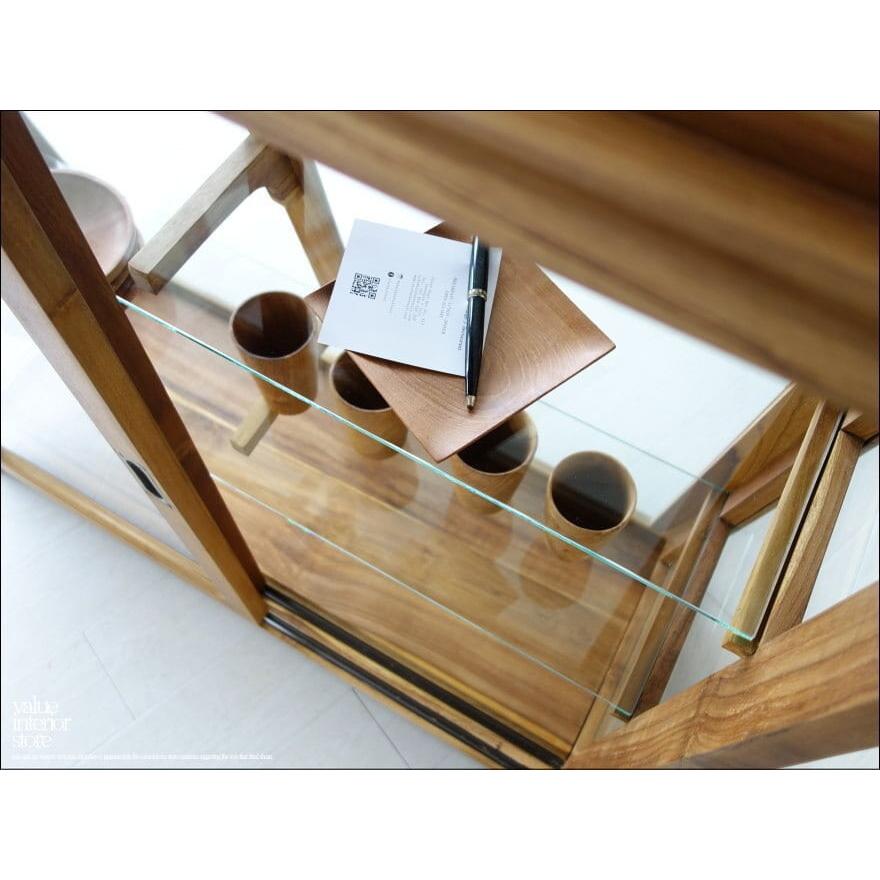 - 美術品・アンティーク・コレクション > 家具 > ※専用レトロ ガラスショーケース 店舗什器 ディスプレイ ナチュラル 木製収納 チーク総無垢 ショーケース台形N コレクションケース ガラスケース